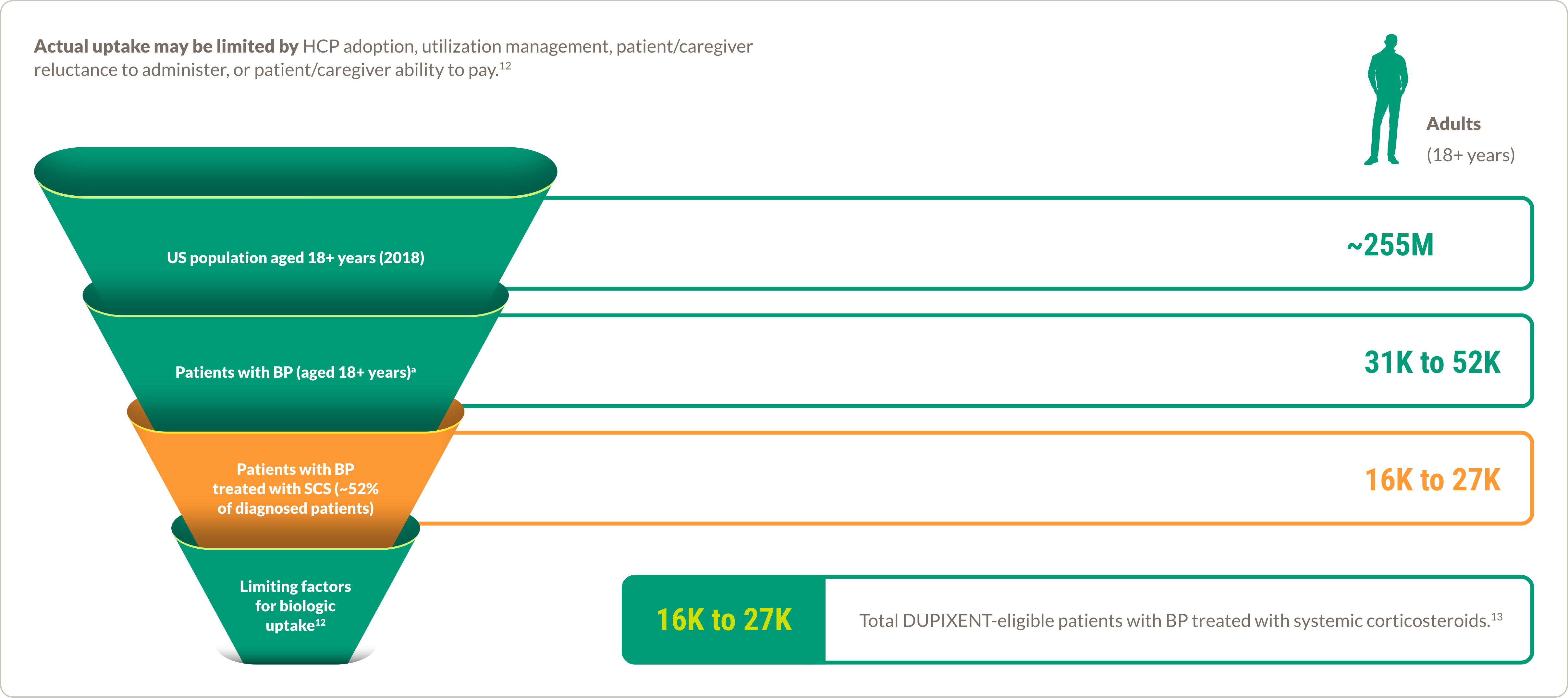 Approximately 16,000 to 27,000 patients with BP treated with systemic corticosteroids are eligible for DUPIXENT.13