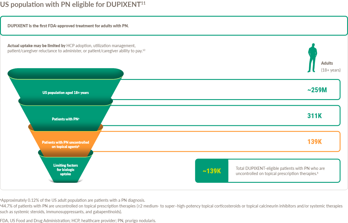 Approximately 139,000 patients with PN that is uncontrolled with topical prescription therapies are eligible for DUPIXENT.13