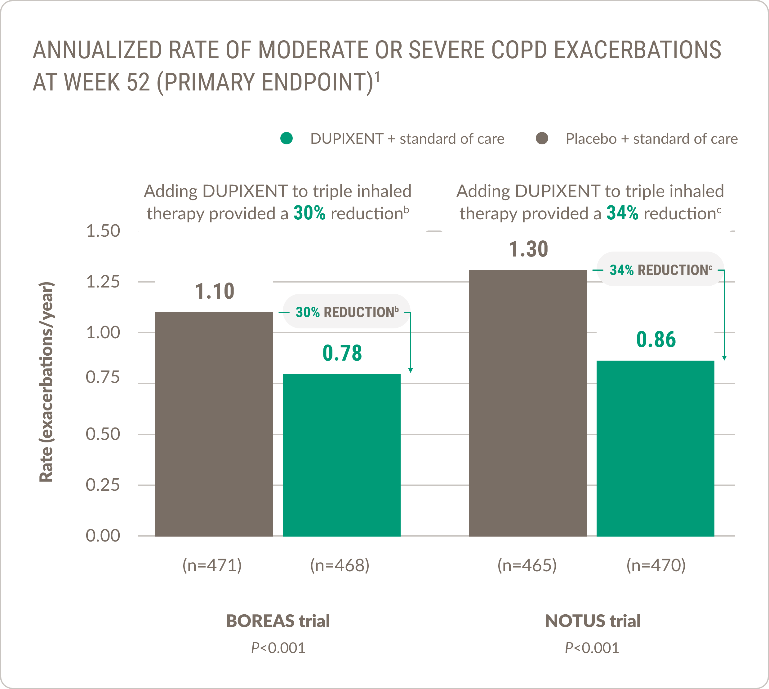 DUPIXENT significantly reduced COPD exacerbations1,a