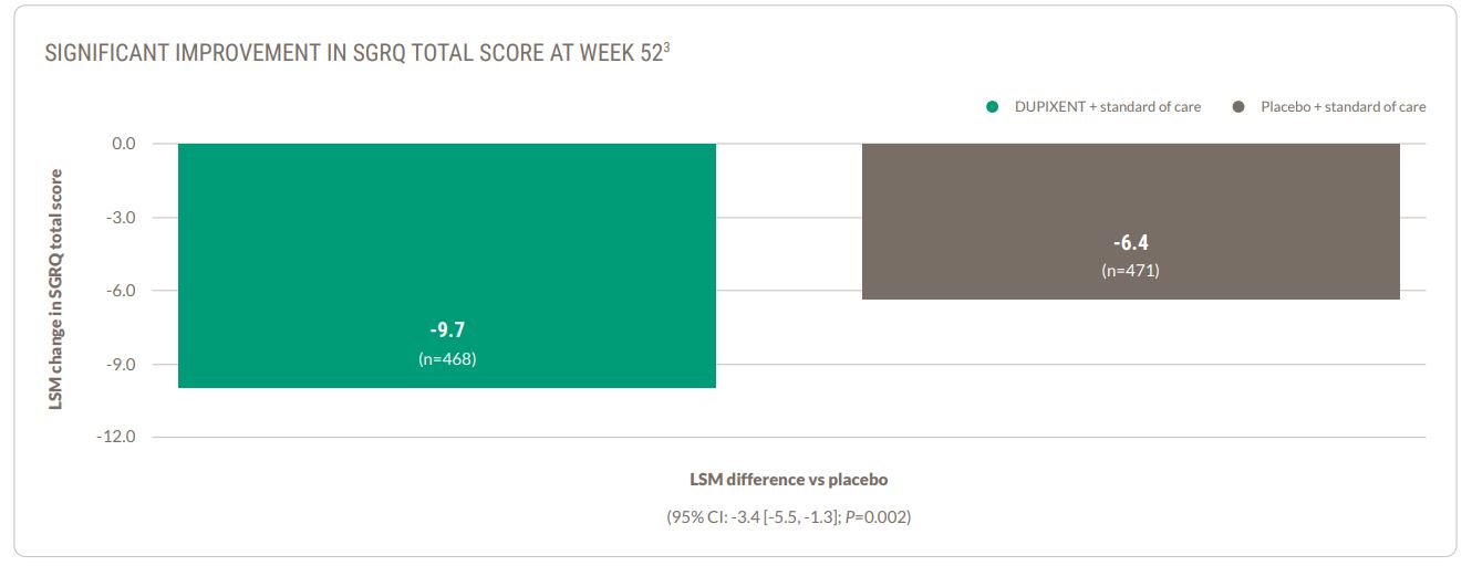 DUPIXENT improved SGRQ total score at Week 52 1
