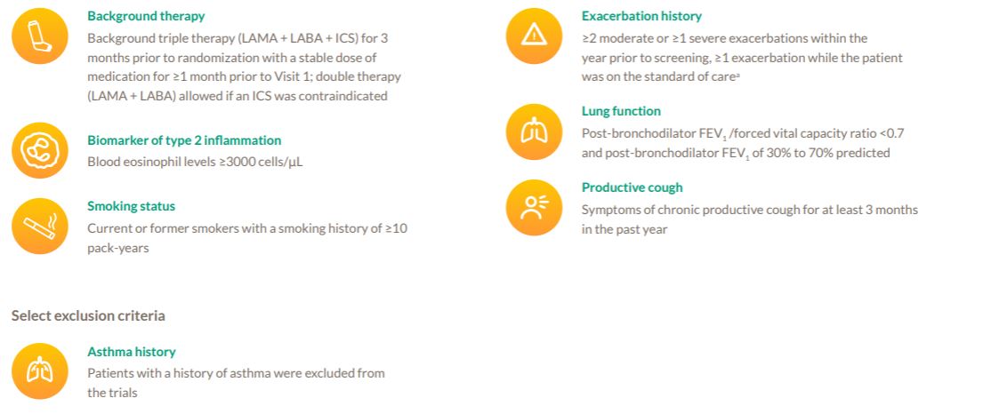 Standard of care was triple inhaled therapy (LAMA + LABA + ICS).2